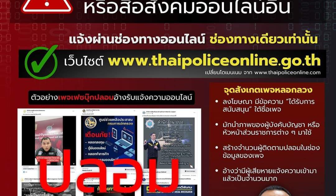 ตร. เตือน แจ้งความออนไลน์มีที่เดียวคือ www.thaipoliceonline.go.th เท่านั้น ไม่มีรับแจ้งผ่านเฟซบุ๊ก