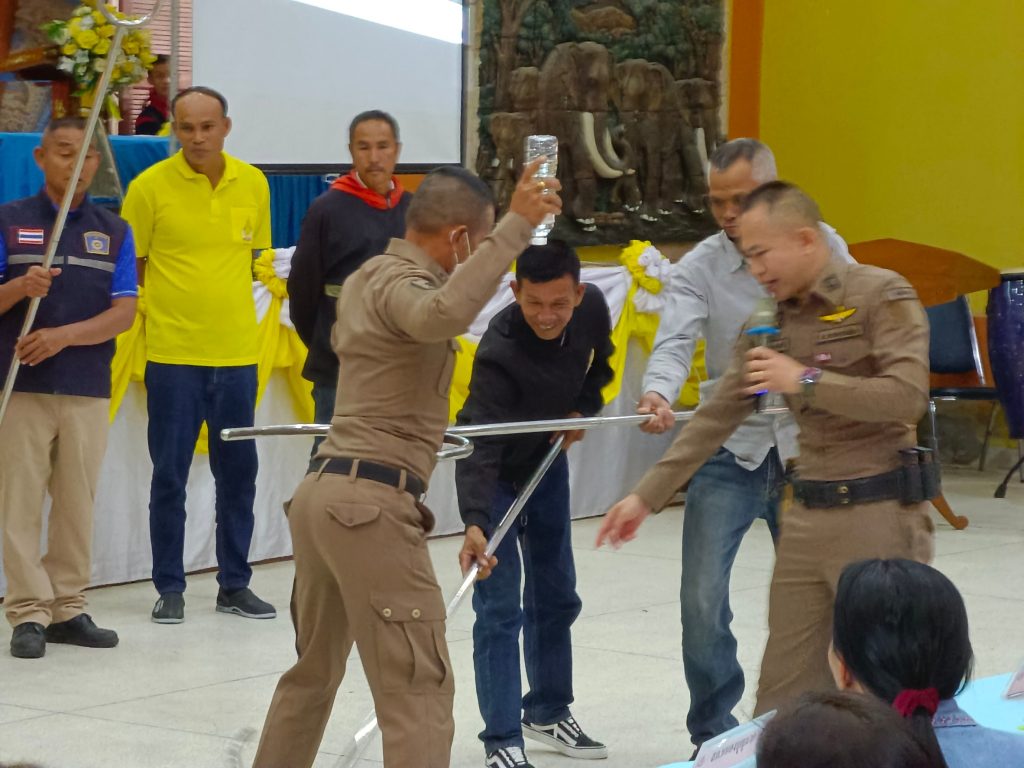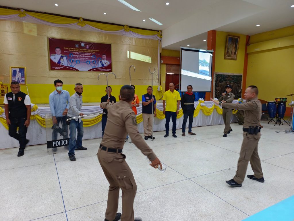 วันที่ 8 ธ.ค.66 พ.ต.ท.อัครคมฆ์ ญาติเจริญ รอง ผกก.ป.สภ.โชคชัย พร้อมด้วย ร.ต.อ.คุณากร วรเมธานนท์ สวป.(ชส.)ฯ, ร้อยเวรป้องกันปราบปราม, สายตรวจรถจักรยานยนต์, ชุด ชมส. และสายตรวจตำบล ร่วมเป็นวิทยากรให้ความรู้เกี่ยวกับยุทธวิธีการเข้าระงับเหตุบุคคลคุ้มคลั่งโดยใช้ไม้ง่าม พร้อมนำประชาชนในพื้นที่รับผิดชอบจำนวน 50 คน เข้าร่วมการอบรมตามโครงการสร้างเครือข่ายการมีส่วนร่วมของประชาชนในการป้องกันอาชญากรรมระดับตำบล ภ.จว.นครราชสีมา ประจำปีงบประมาณ 2566 ณ หอประชุมอำเภอโชคชัย ต.โชคชัยฯ