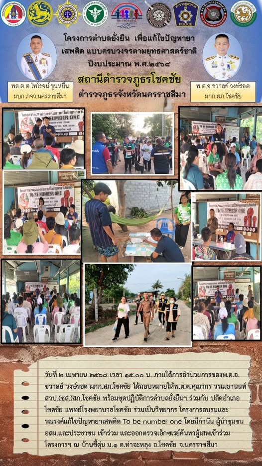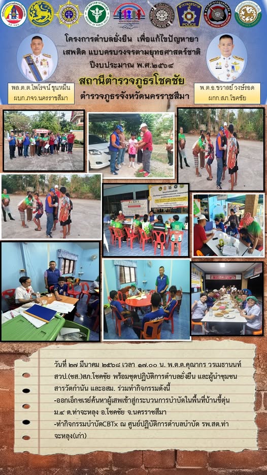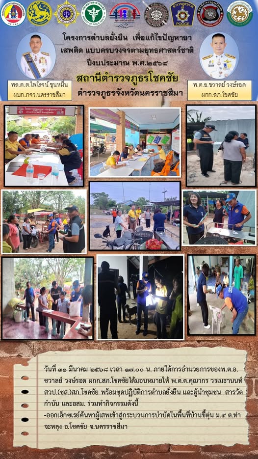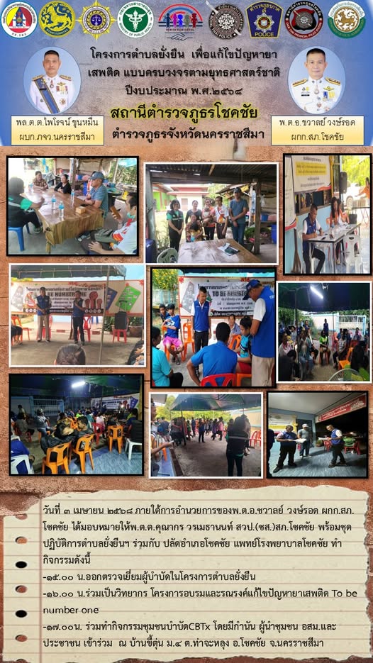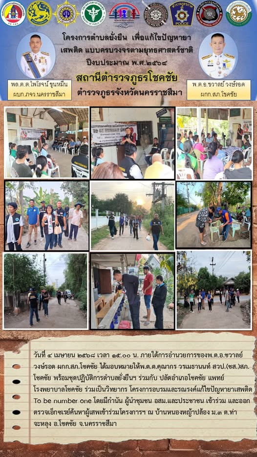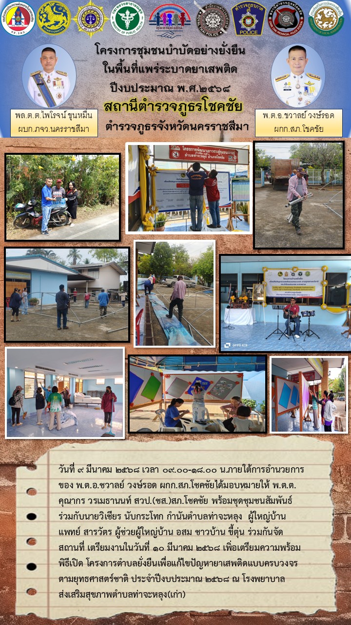 เรียนผู้บังคับบัญชา สภ.โชคชัย วันที่ 28 เมษายน 2568 เวลา 15.00 น. ภายใต้การอำนวยการของพ.ต.อ.ชวาลย์ ว